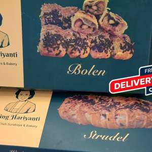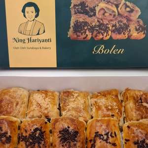 Ning Hariyanti pusat Oleh Oleh Surabaya punya jajanan Bolen Enak dan Murah dengan beragam varian dan rasa. Menggunakan pisang raja sebagai isian ada bolen coklat, coklat keju, keju, mix (campuran coklat dan keju), nutela, nutela keju, smoked beef cheese.